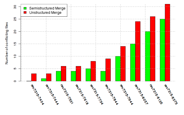This website contains the results of an empirical study on semistructured and unstructured merge with regard to their abilities to resolve merge conflicts. The two merge approaches, the tool, and the empirical study are described in detail in a