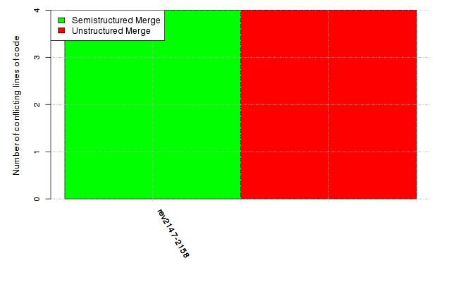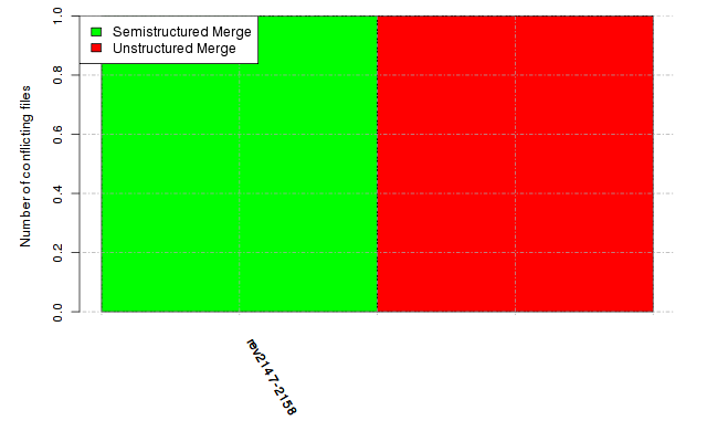 FeatureHouse, which implements (amongst others) the two merge approaches. To compare semistructured and unstructured merge, FeatureHouse creates for each two revisions of a file (and its common base revision) two new output files, one containing the result of unstructured merge and one containing the result of semistructured merge.